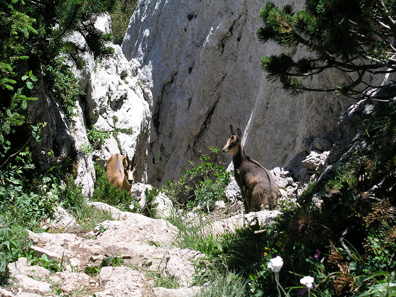 Gämse wurden von dreißig Jahren im Velebit-Gebirge wieder angesiedelt und seit damals kann man sie oft auf den Berggipfeln des Parks beobachten. Sie bewohnen die höchsten Berglagen mit Weiden und Steingärten und im Winter steigen sie in niedrigere Bereiche ab. Gämse sind bei der Nahrung nicht wählerisch, so dass sie alle Arten von Bergpflanzen fressen, ebenso wie